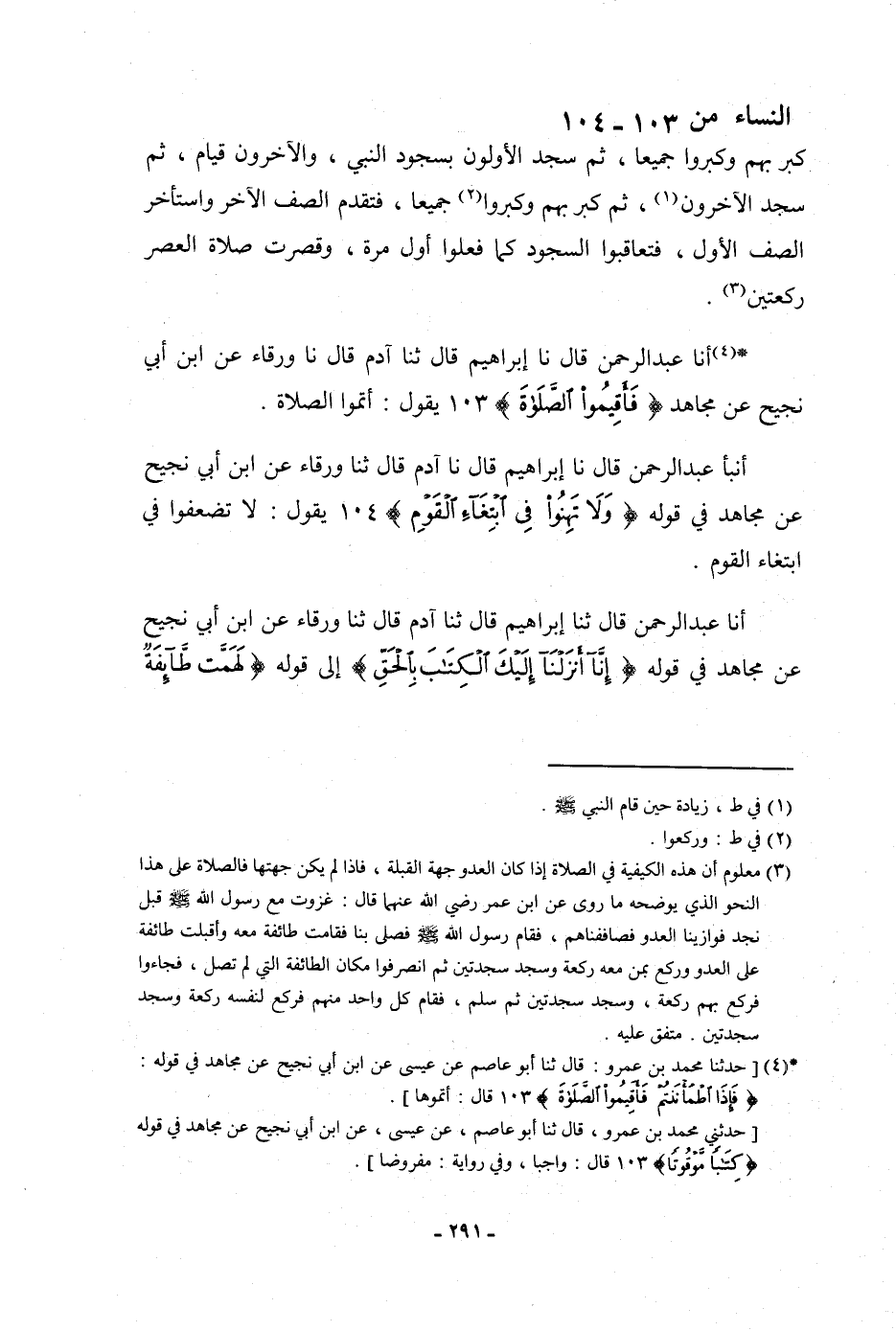 أنا عَبْدُ الرَّحْمَنِ، قَالَ: نا إِبْرَاهِيمُ، قَالَ: ثنا آدَمُ، قَالَ: نا وَرْقَاءُ، عَنِ ابْنِ أَبِي نَجِيحٍ، عَنْ مُجَاهِدٍ، {فَأَقِيمُوا الصَّلَاةَ} [الحج: 78] يَقُولُ: «§أَتِمُّوا الصَّلَاةَ»