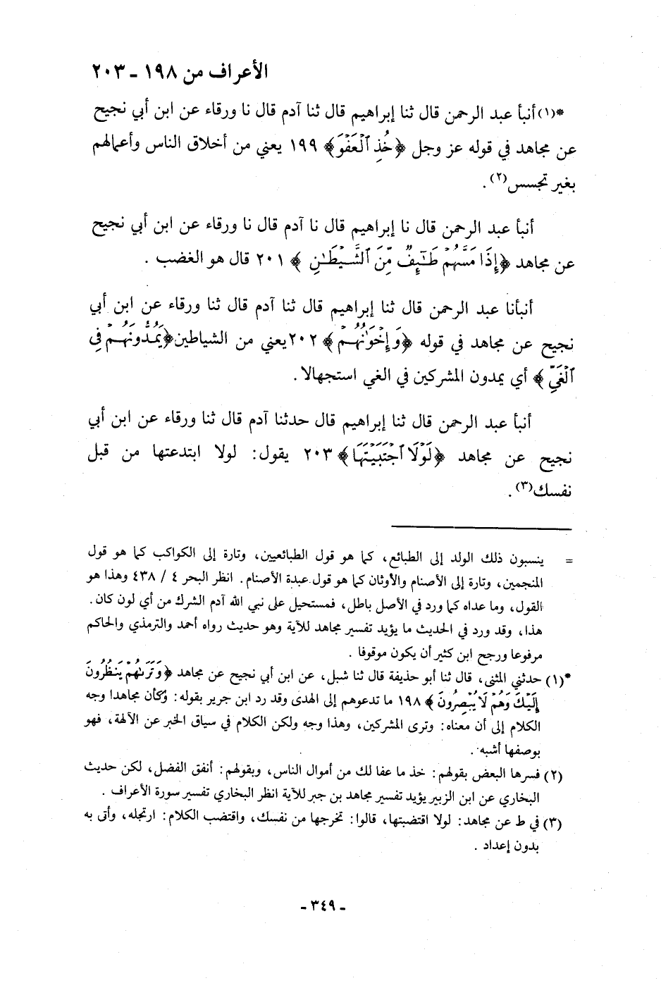 أَنْبَأَنَا عَبْدُ الرَّحْمَنِ، قَالَ: ثنا إِبْرَاهِيمُ، قَالَ: ثنا آدَمُ، قَالَ: ثنا وَرْقَاءُ، عَنِ ابْنِ أَبِي نَجِيحٍ، عَنْ مُجَاهِدٍ، فِي قَوْلِهِ: {وَإِخْوَانُهُمْ} [الأنعام: 87] يَعْنِي: «مِنَ الشَّيَاطِينِ» {§يَمُدُّونَهُمْ فِي الْغَيِّ} [الأعراف: 202] «أَيْ يَمُدُّونَ الْمُشْرِكِينَ فِي الْغَيِّ اسْتِجْهَالًا»