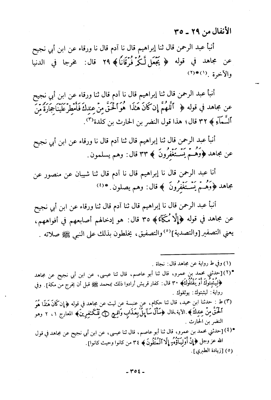 أنبأ عَبْدُ الرَّحْمَنِ، قَالَ: ثنا إِبْرَاهِيمُ، قَالَ: ثنا آدَمُ، قَالَ: نا وَرْقَاءُ، عَنِ ابْنِ أَبِي نَجِيحٍ، عَنْ مُجَاهِدٍ: {وَهُمْ يَسْتَغْفِرُونَ} [الأنفال: 33] قَالَ: «§وَهُمْ يُسْلِمُونَ»