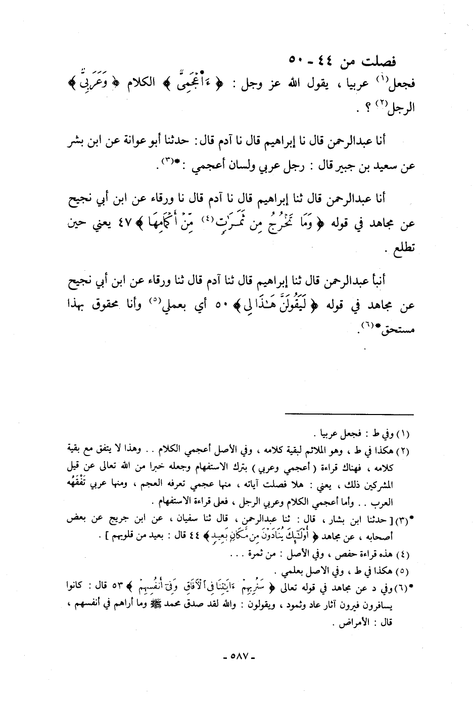 أنا عَبْدُ الرَّحْمَنِ، قَالَ: نا إِبْرَاهِيمُ، قَالَ: نا آدَمُ، قَالَ: حَدَّثَنَا أَبُو عَوَانَةَ، عَنْ أَبِي بِشْرٍ، عَنْ سَعِيدِ بْنِ جُبَيْرٍ، قَالَ: «§رَجُلٌ عَرَبِيٌّ وَلِسَانٌ أَعْجَمِيٌّ»