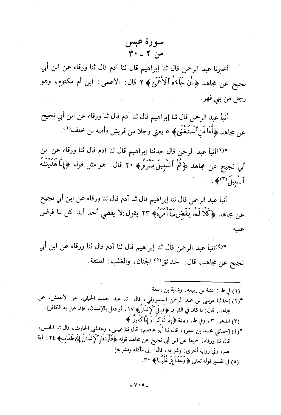 أنبأ عَبْدُ الرَّحْمَنِ، قَالَ: ثنا إِبْرَاهِيمُ، قَالَ: ثنا آدَمُ، قَالَ: ثنا وَرْقَاءُ، عَنِ ابْنِ أَبِي نَجِيحٍ، عَنْ مُجَاهِدٍ: {أَمَّا مَنِ اسْتَغْنَى} [عبس: 5] ، يَعْنِي: «§رَجُلًا مِنْ قُرَيْشٍ، وَأُمَيَّةَ بْنَ خَلَفٍ»