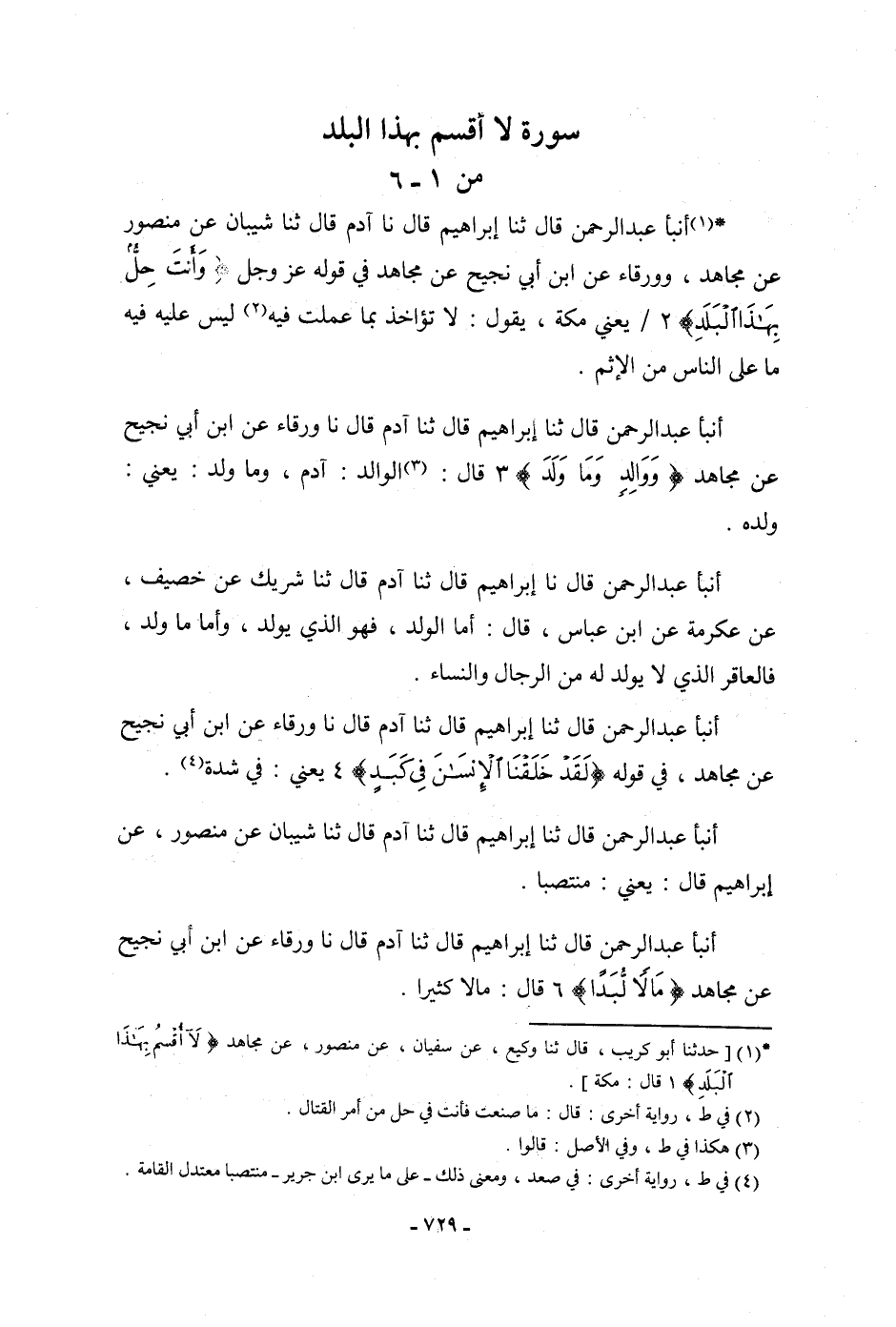 أنبأ عَبْدُ الرَّحْمَنِ، قَالَ: ثنا إِبْرَاهِيمُ، قَالَ: نا آدَمُ، قَالَ: ثنا شَيْبَانُ، عَنْ مَنْصُورٍ، وَوَرْقَاءَ، عَنِ ابْنِ أَبِي نَجِيحٍ، عَنْ مُجَاهِدٍ، فِي قَوْلِهِ عَزَّ وَجَلَّ {§وَأَنْتَ حِلٌّ بِهَذَا الْبَلَدِ} [البلد: 2] ، يَعْنِي: " مَكَّةَ يَقُولُ: لَا تُؤَاخَذُ بِمَا عَمِلْتَ فِيهِ لَيْسَ عَلَيْهِ فِيهِ مَا عَلَى النَّاسِ مِنَ الْإِثْمِ "