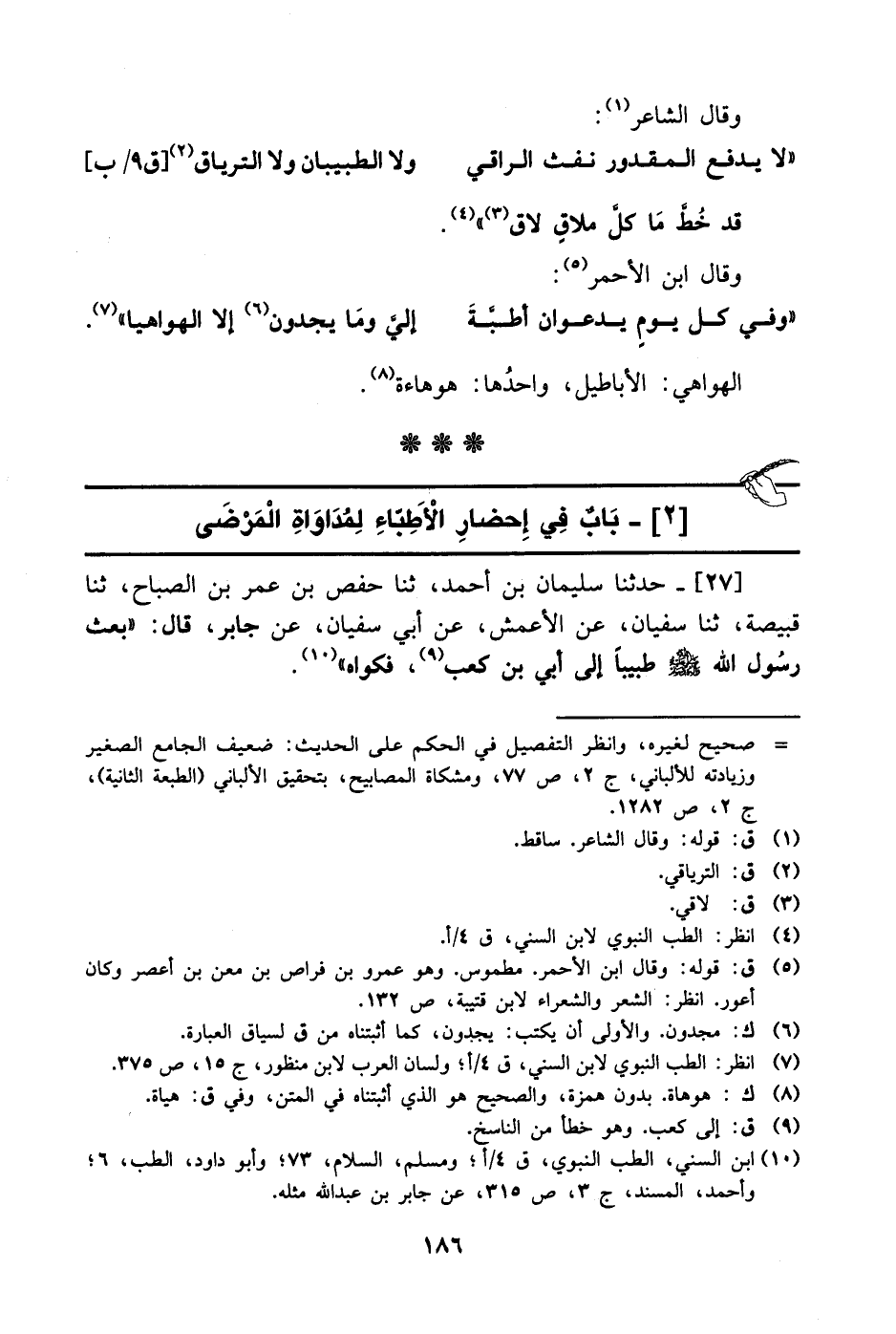 [2] باب في إحضار الأطباء لمداواة المرضى