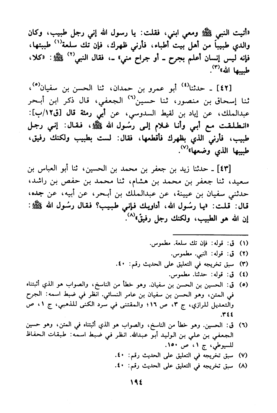 43- حَدَّثَنا زيد بن جعفر بن محمد بن الحسين، حَدَّثَنا أبو العباس بن سعيد، حَدَّثَنا جعفر بن محمد بن هشام، حَدَّثَنا محمد بن حفص بن راشد حدثني سفيان بن عيينة، عَن عَبد الملك بن أبحر، عَن أبيه، عَن جَدِّه قال: قلت: يا رسول الله أداويك فإني طبيب؟ فقال رسول الله صَلَّى الله عَليْهِ وَسلَّم: إن الله هو الطبيب ولكنك رجل رفيق.