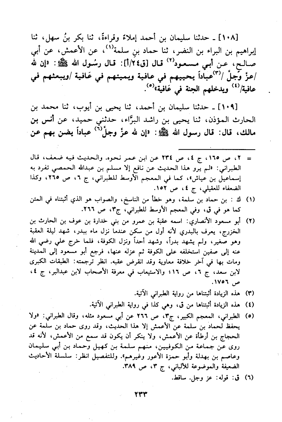 108- حَدَّثَنا سليمان بن أحمد إملاء وقراءة، حَدَّثَنا بكر بن سهل، حَدَّثَنا إبراهيم بن البراء بن النضر، حَدَّثَنا حماد بن سلمة، عَن الأعمش، عَن أَبِي صالح، عَن أَبِي مسعود، قال: قال رسول الله صَلَّى الله عَليْهِ وَسلَّم: إن لله عز وجل عبادا يحييهم في عافية ويميتهم في عافية ويبعثهم في عافية ويدخلهم الجنة في عافية.