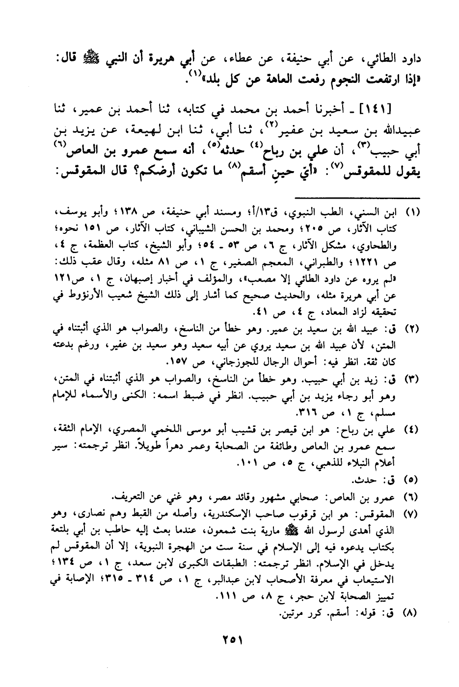 141- أخبرنا أحمد بن محمد في كتابه، حَدَّثَنا أحمد بن عمير، حَدَّثَنا عبيد الله بن سعيد بن عفير، حَدَّثَنا أبي، حَدَّثَنا ابن لهيعة، عَن يزيد بن أبي حبيب أن علي بن رباح حدثه أنه سمع عَمْرو بن العاص يقول للمقوقس: أي حين أسقم ما تكون أرضكم؟ قال المقوقس: -[252]- هتور وكيهك فإن الأعاجم يقولون: إن كيهك يقول لهتور: اصرعهم أنت حتى أقتلهم أنا.