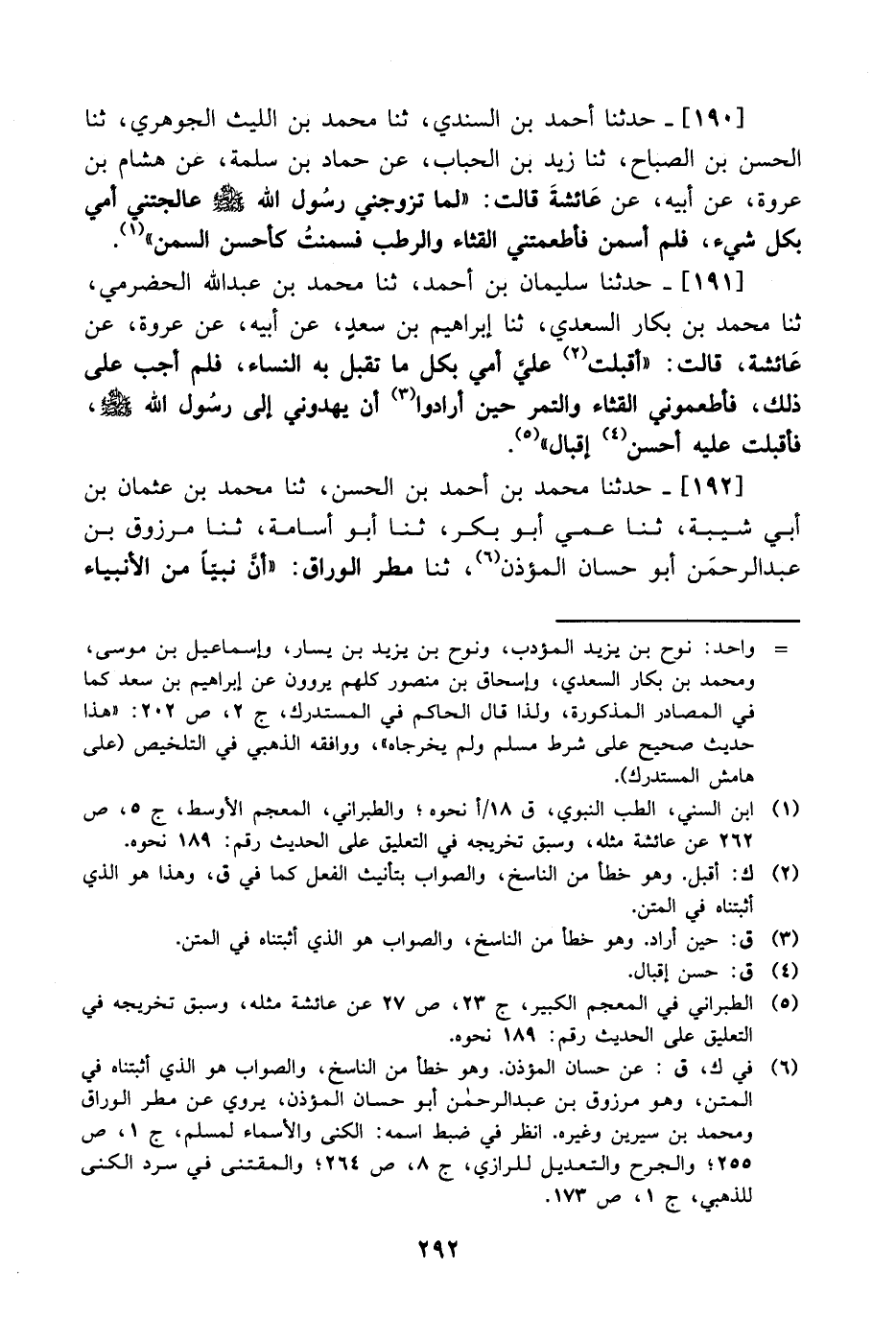 190- حَدَّثَنا أحمد بن السندي، حَدَّثَنا محمد بن الليث الجوهري، حَدَّثَنا الحسن بن الصباح، حَدَّثَنا زيد بن الحباب، عَن حماد بن سلمة، عَن هشام بن عروة، عَن أبيه، عَن عائشة قالت: لما تزوجني رسول الله صَلَّى الله عَليْهِ وَسلَّم عالجتني أمي بكل شيء فلم أسمن فأطعمتني القثاء والرطب فسمنت كأحسن السمن.
