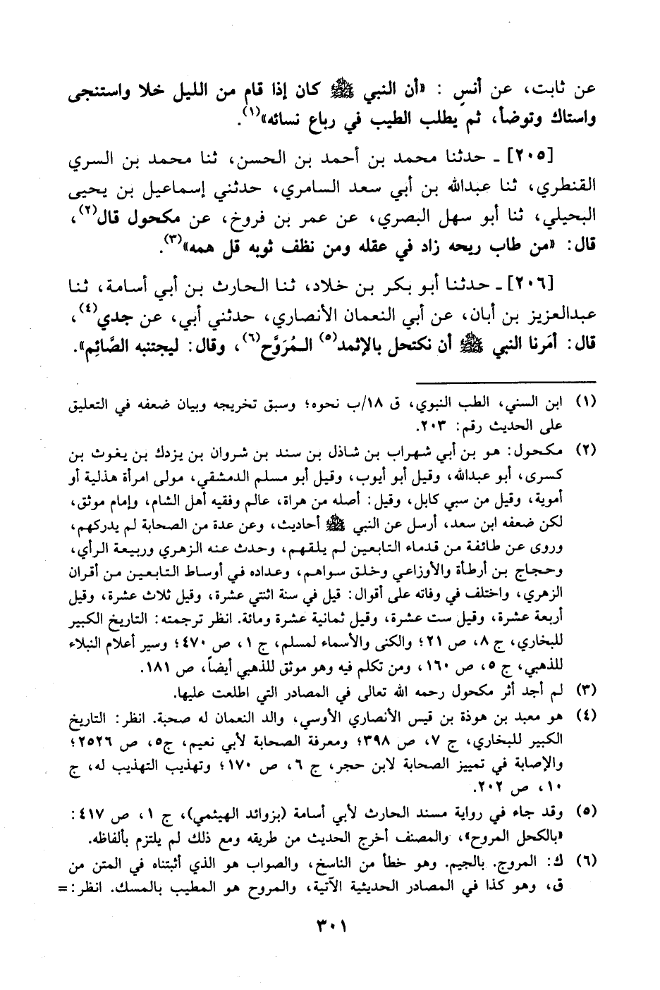 205- حَدَّثَنا محمد بن أحمد بن الحسن، حَدَّثَنا محمد بن السري القنطري، حَدَّثَنا عبد الله بن أبي سعد السامري حدثني إسماعيل بن يحيى البحيلي، حَدَّثَنا أبو سهل البصري، عَن عُمَر بن فروخ، عَن مكحول قال قال: من طاب ريحه زاد في عقله ومن نظف ثوبه قل همه.