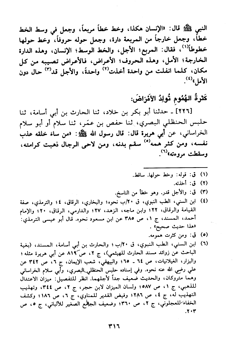 226- حَدَّثَنا أبو بكر بن خلاد، حَدَّثَنا الحارث بن أبي أسامة، حَدَّثَنا حلبس الحنظلي البصري، حَدَّثَنا حفص بن عُمَر، حَدَّثَنا سلام، أَو أبو سلام الخراساني، عَن أَبِي هُرَيرة، قال: قال رسول الله صَلَّى الله عَليْهِ وَسلَّم: من ساء خلقه عذب نفسه ومن كثر همه سقم بدنه ومن لاحى الرجال ذهبت كرامته وسقطت مروءته.