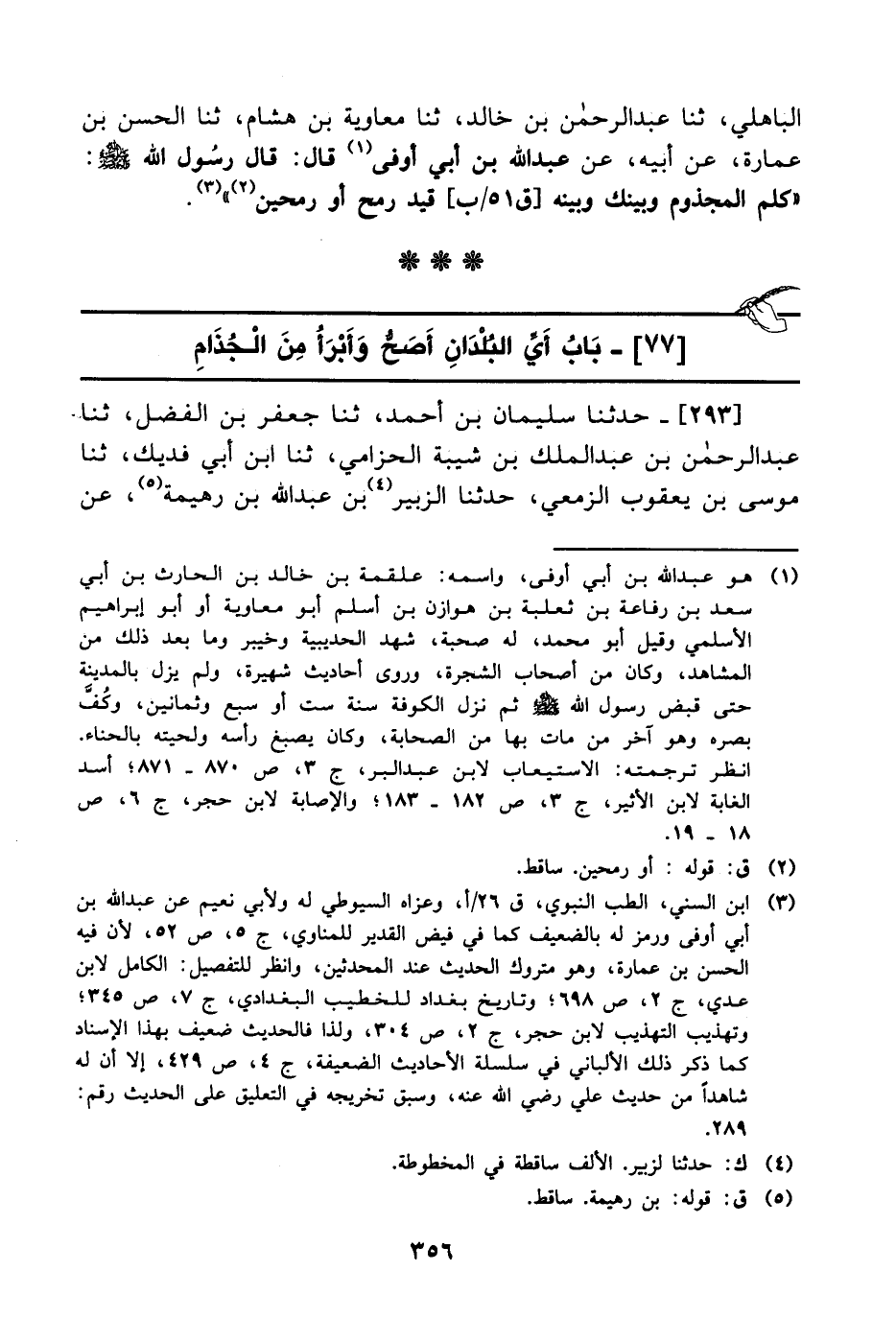 [77] باب أي البلدان أصح وأبرأ من الجذام