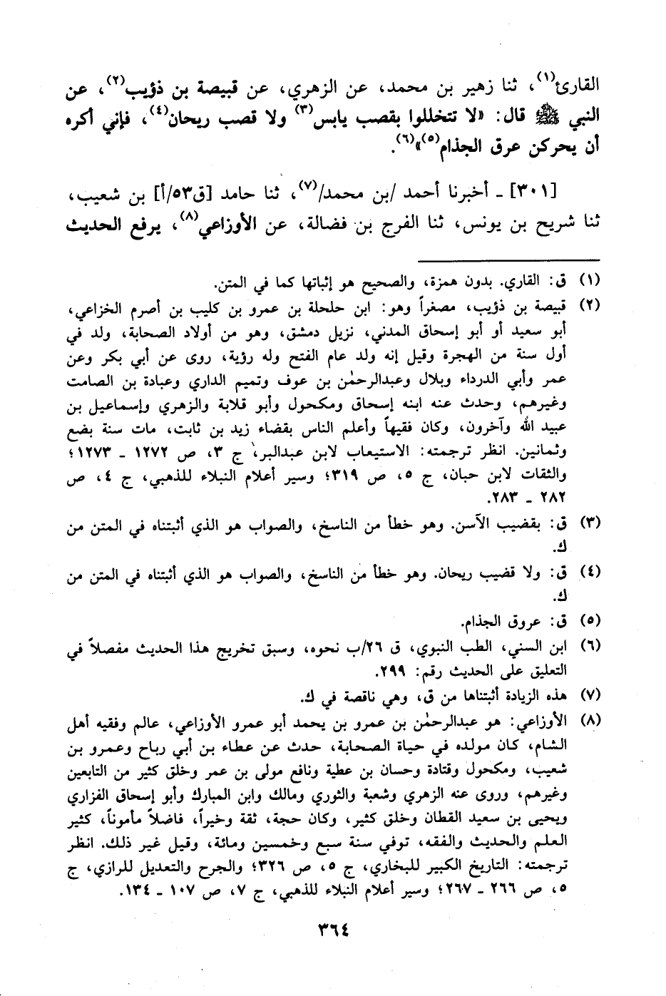 301- أخبرنا أحمد بن محمد، حَدَّثَنا حامد بن شعيب، حَدَّثَنا شريح بن يونس، حَدَّثَنا الفرج بن فضالة، عَن الأوزاعي يرفع الحديث -[365]- إلى النبي صَلَّى الله عَليْهِ وَسلَّم: أنه نهى، عَن التخلل بالآس وقال: إنه يسقي عرق الجذام.