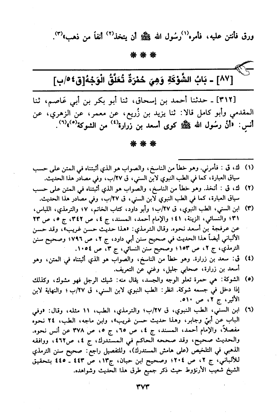 [87] باب الشوكة وهي حمرة تعلق الوجه