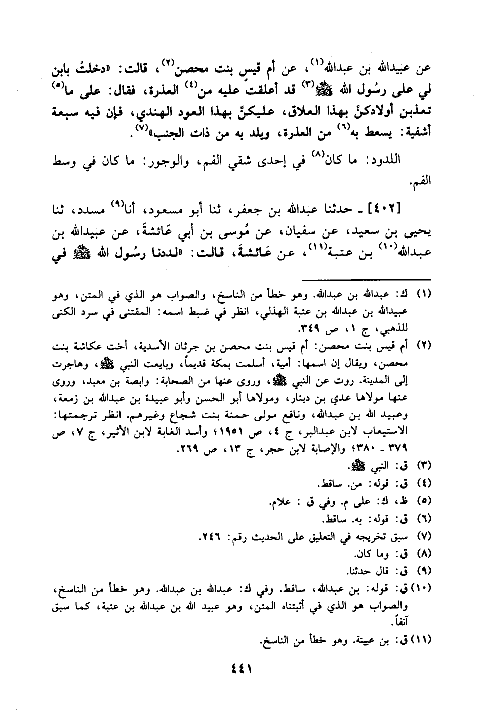 402- حَدَّثَنا عبد الله بن جعفر، حَدَّثَنا أبو مسعود، أَخْبَرنا مسدد، حَدَّثَنا يحيى بن سعيد، عَن سُفيان، عَن موسى بن أبي عائشة، عَن عبيد الله بن عبد الله بن عتبة، عَن عائشة قالت: لددنا رسول الله صَلَّى الله عَليْهِ وَسلَّم في -[442]- مرضه فقال: لا تلدوني؟ فجعل يشير إلينا فقلنا: كراهية المريض للدواء فلما أفاق فقال: ألم أنهكم أن تلدوني فقلنا: يا رسول الله كراهية المريض للدواء قال: لا يبقى في البيت أحد إلا لد وأنا أنظر إلا العباس فإنه لم يشهدكم.