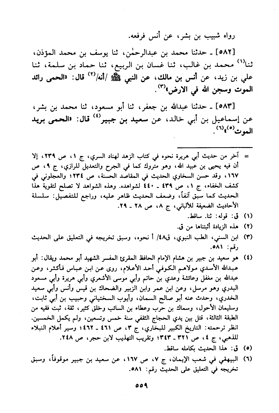 583- حَدَّثَنا عبد الله بن جعفر، حَدَّثَنا أبو مسعود، حَدَّثَنا محمد بن بشر، عَن إسماعيل بن أبي خالد، عَن سعيد بن جبير قال: الحمى بريد الموت.