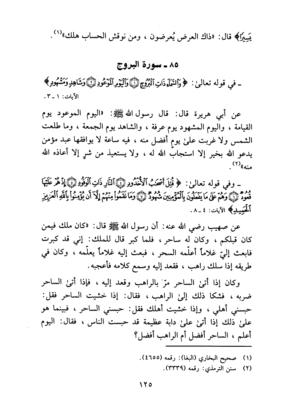 - في قوله تعالى: (وَالسَّماءِ ذاتِ الْبُرُوجِ (1) وَالْيَوْمِ الْمَوْعُودِ (2) وَشاهِدٍ وَمَشْهُودٍ) الآيات: 1 - 3.