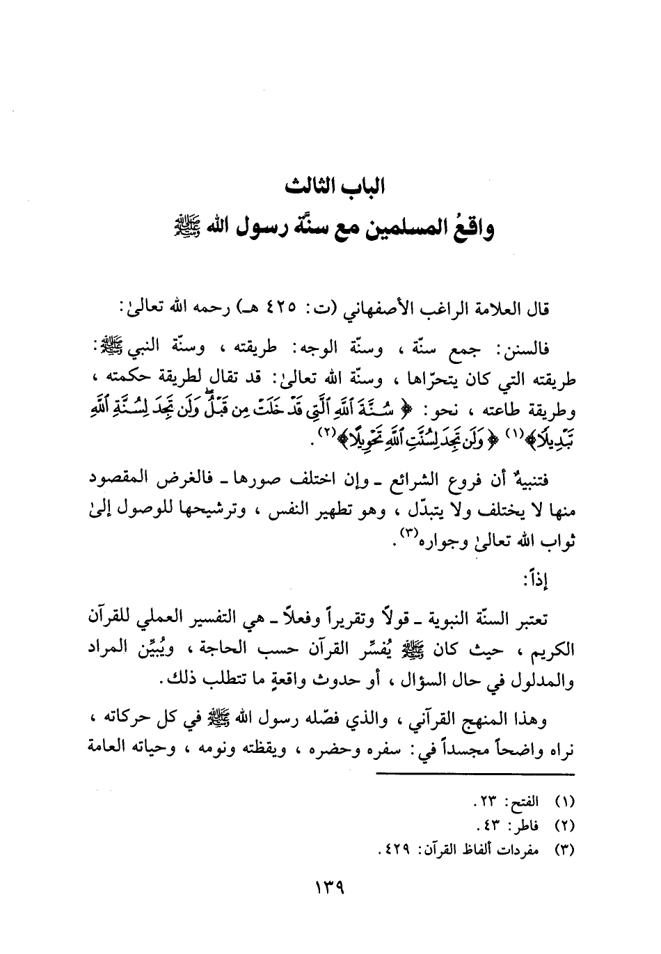 الباب الثالث واقع المسلمين مع سنّة رسول الله صلى الله عليه وسلم قال العلامة الراغب الأصفهاني (ت: 425 هـ) رحمه الله تعالى: