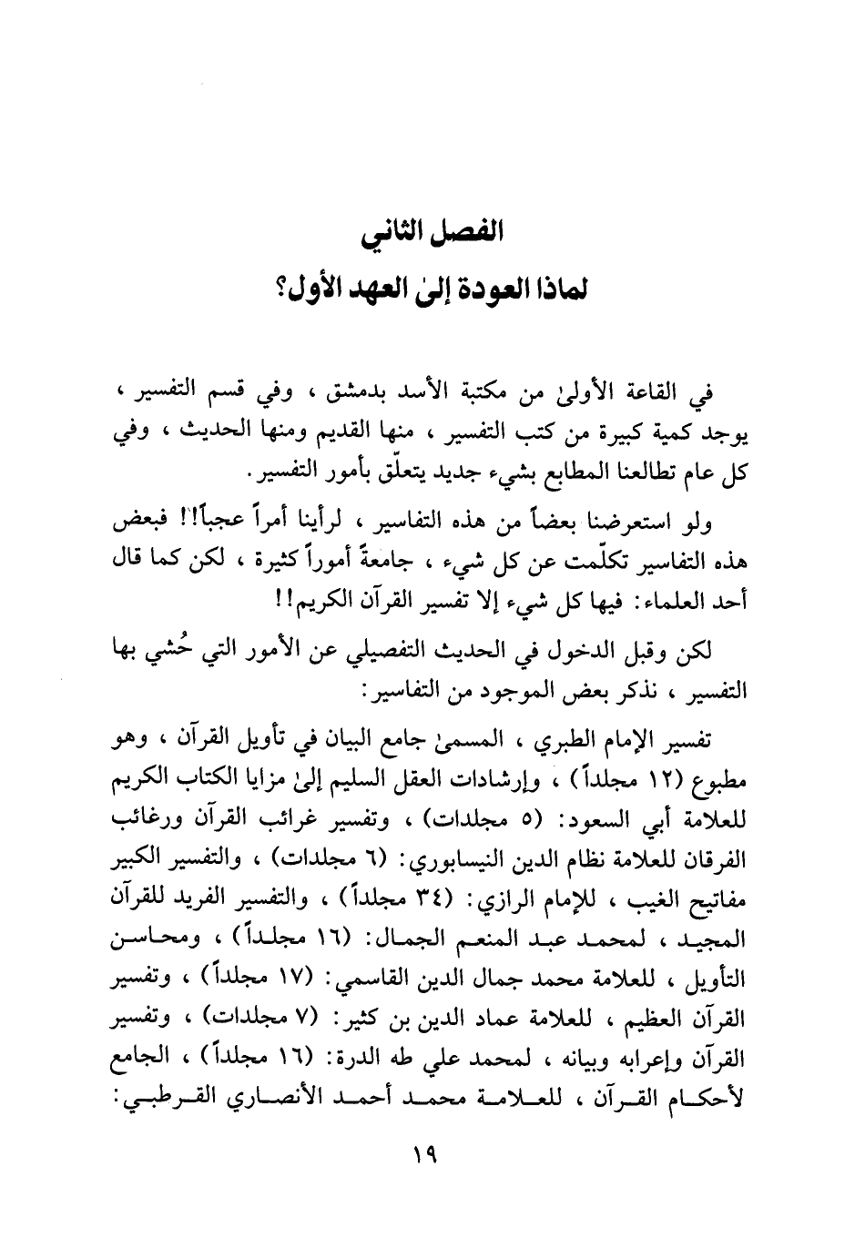 الفصل الثاني لماذا العودة إلى العهد الأول؟