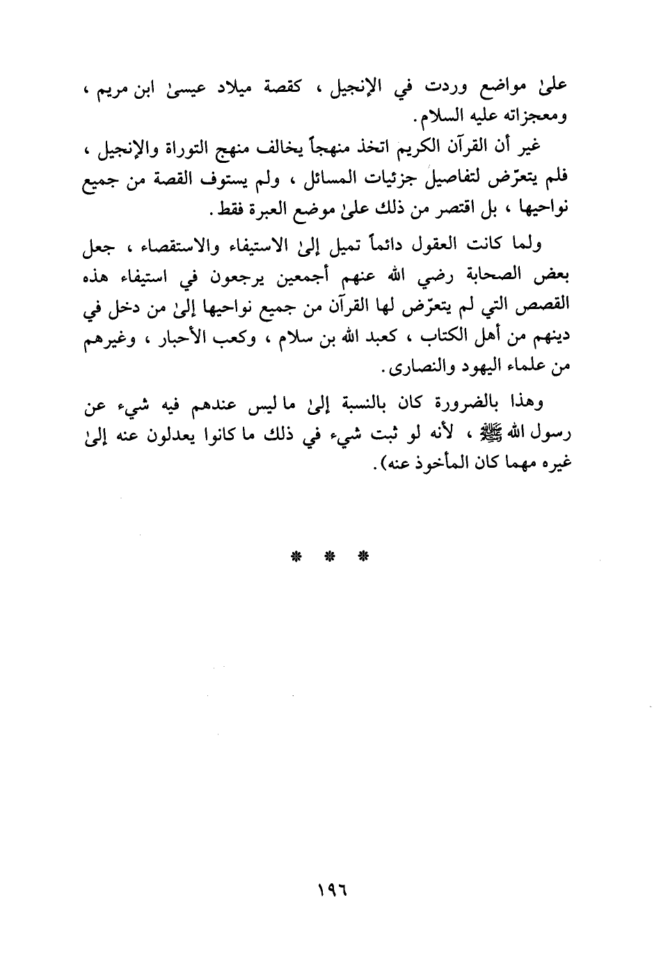 غير أن القرآن الكريم اتخذ منهجا يخالف منهج التوراة والإنجيل، فلم يتعرّض لتفاصيل جزئيات المسائل، ولم يستوف القصة من جميع نواحيها، بل اقتصر من ذلك على موضع العبرة فقط.