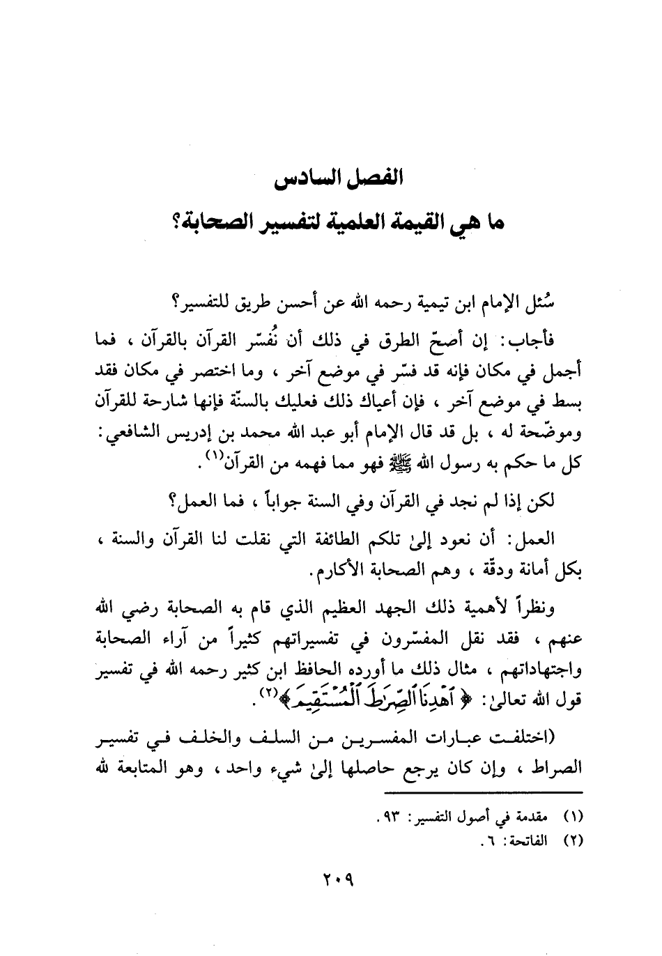 الفصل السادس ما هي القيمة العلمية لتفسير الصحابة؟