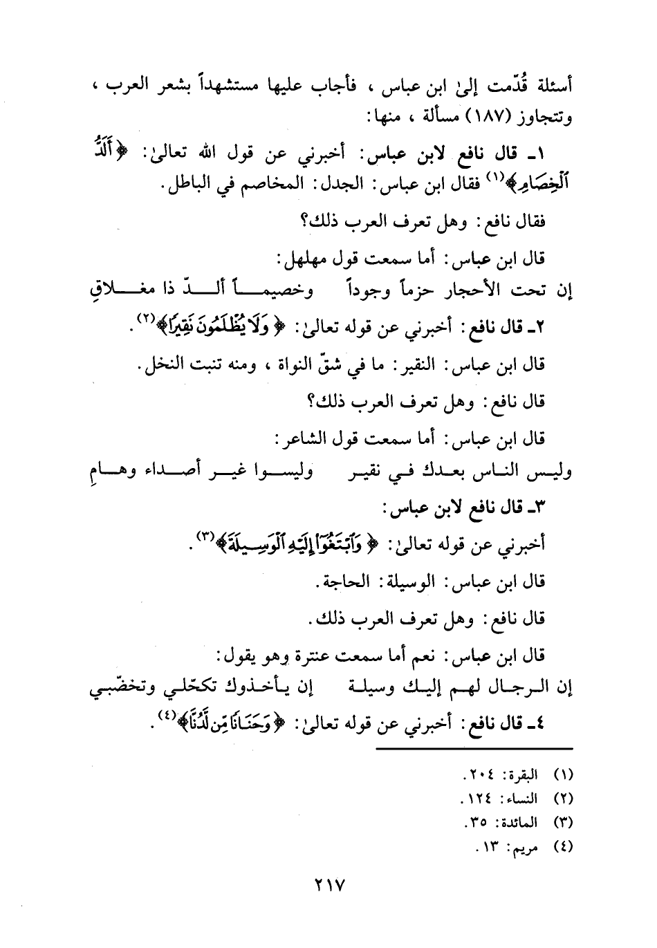 أسئلة قدّمت إلى ابن عباس، فأجاب عليها مستشهدا بشعر العرب، وتتجاوز (187) مسألة، منها: