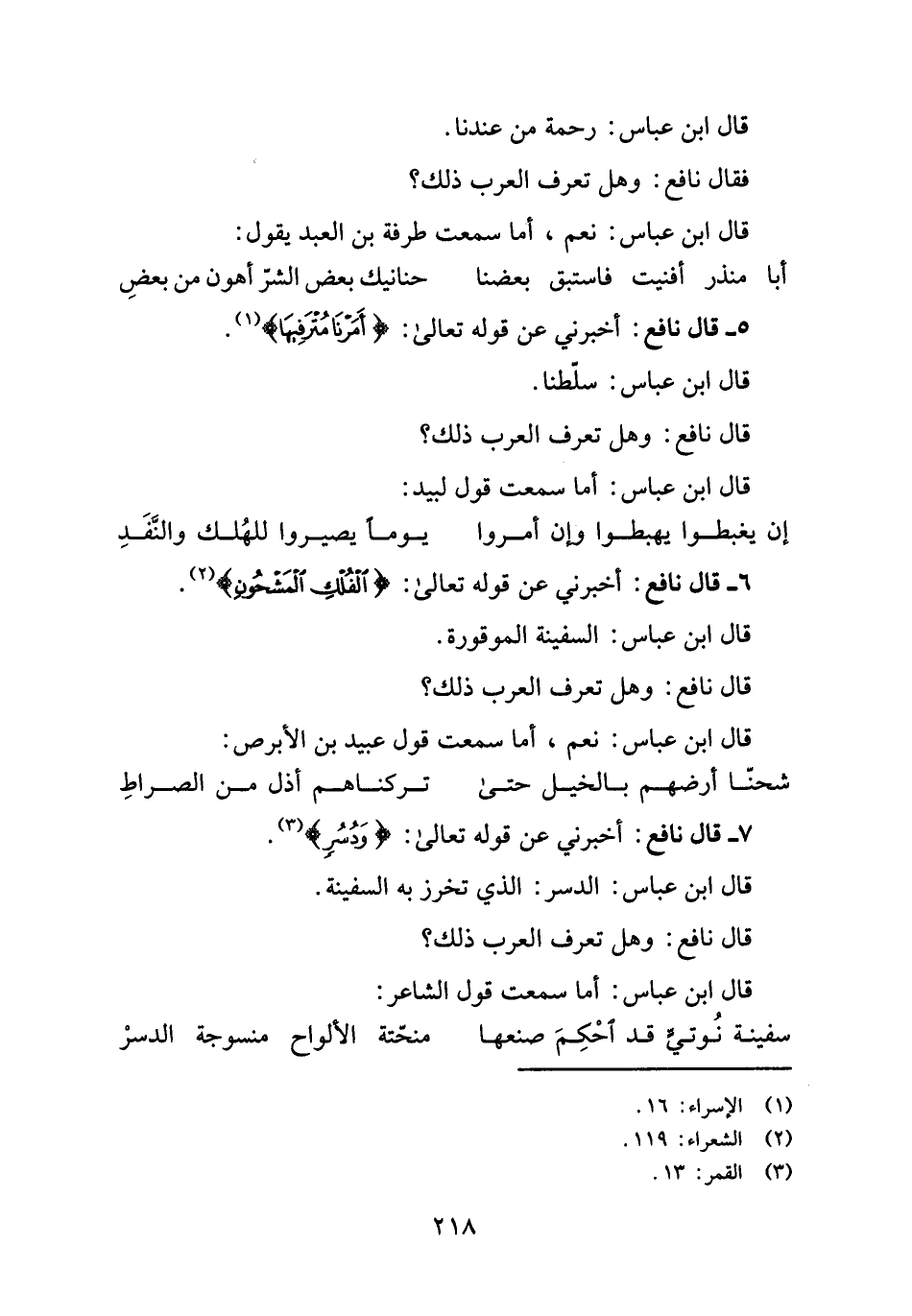 قال ابن عباس: نعم، أما سمعت طرفة بن العبد يقول: