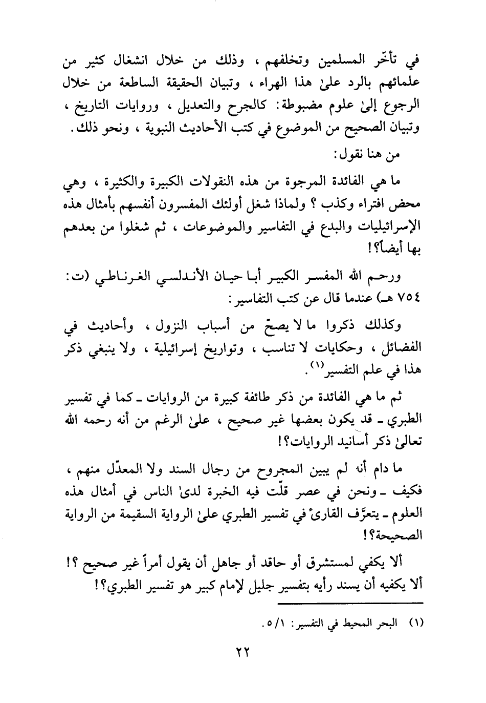 ألا يكفي لمستشرق أو حاقد أو جاهل أن يقول أمرا غير صحيح؟! ألا يكفيه أن يسند رأيه بتفسير جليل لإمام كبير هو تفسير الطبري؟!