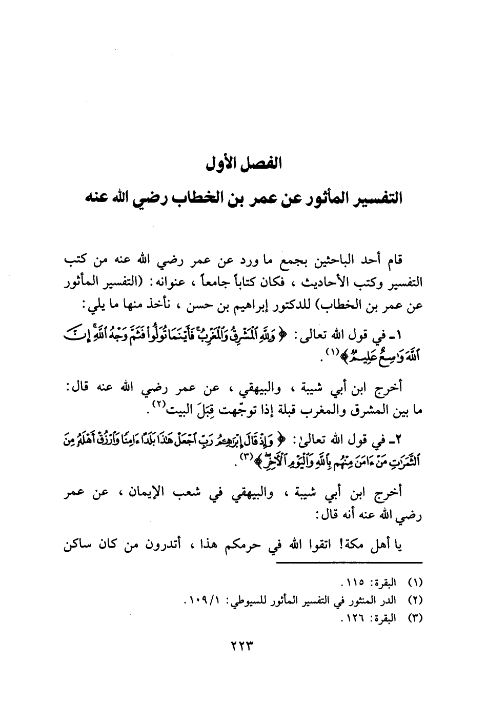 الفصل الأول التفسير المأثور عن عمر بن الخطاب رضي الله عنه
