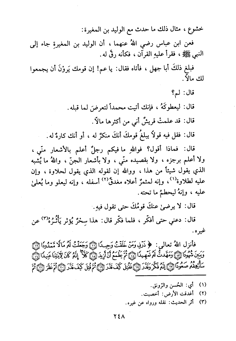 خشوع، مثال ذلك ما حدث مع الوليد بن المغيرة: