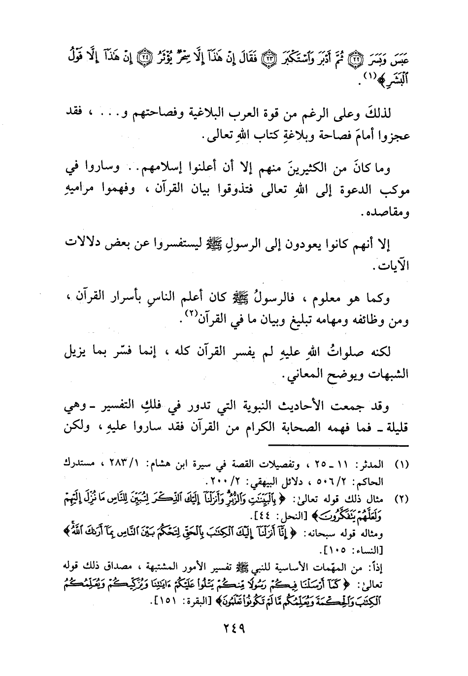 وكما هو معلوم، فالرسول صلى الله عليه وسلم كان أعلم الناس بأسرار القرآن، ومن وظائفه ومهامه تبليغ وبيان ما في القرآن (¬2).