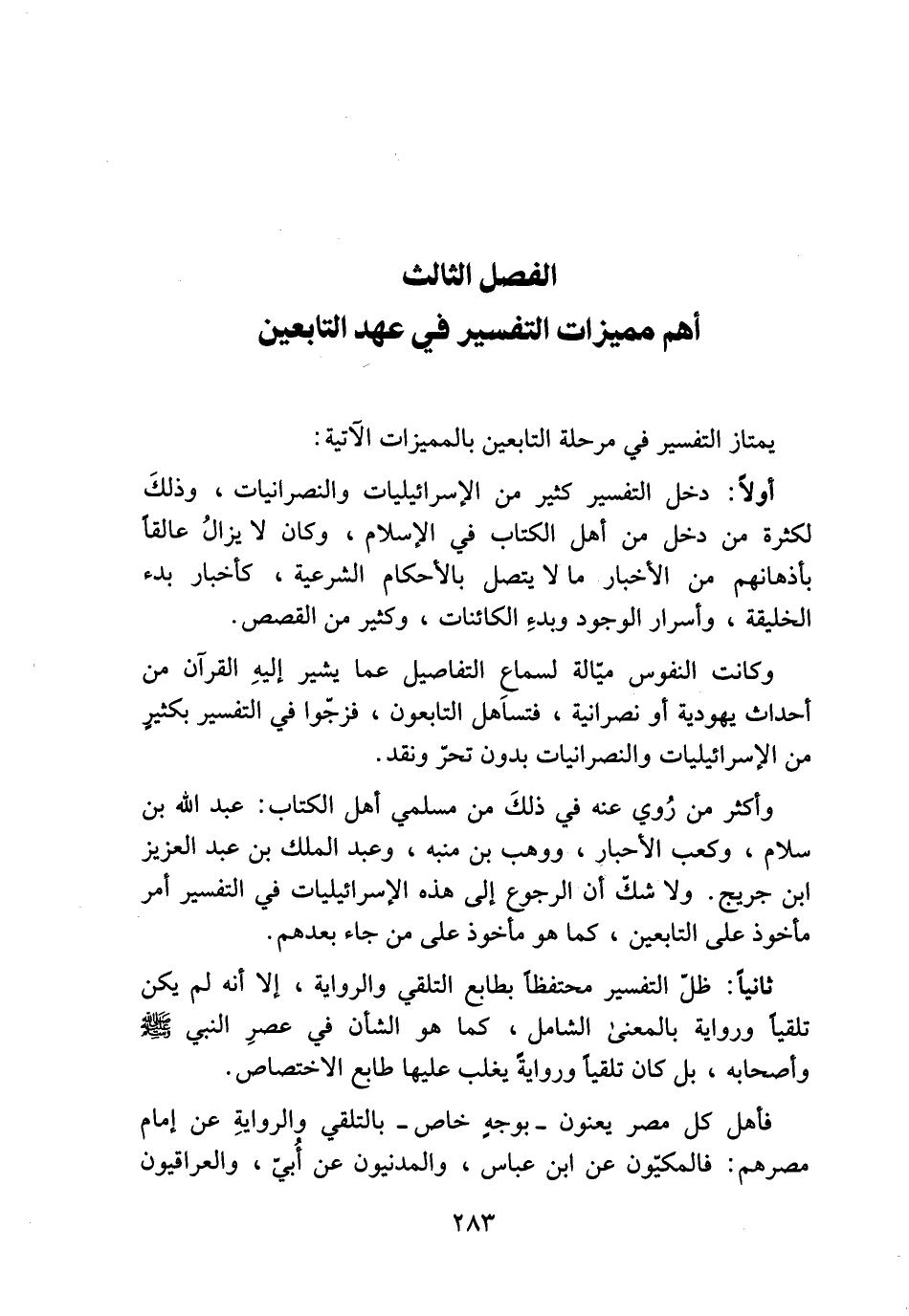 الفصل الثالث أهم مميزات التفسير في عهد التابعين