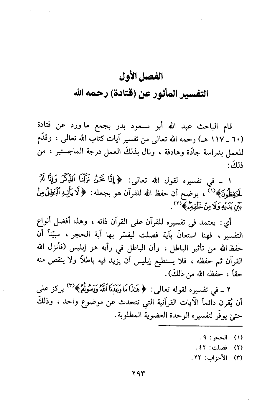 الفصل الأول التفسير المأثور عن (قتادة) رحمه الله
