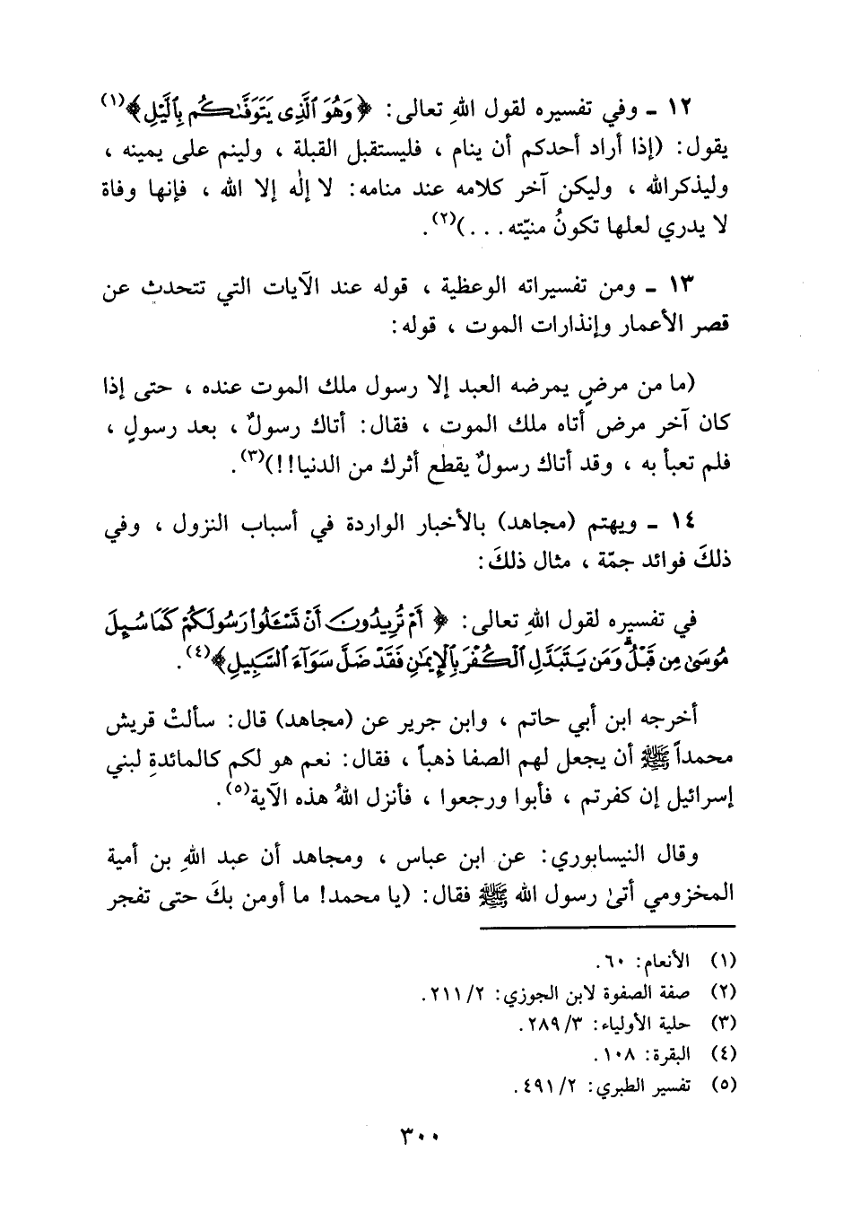 14 - ويهتم (مجاهد) بالأخبار الواردة في أسباب النزول، وفي ذلك فوائد جمّة، مثال ذلك: