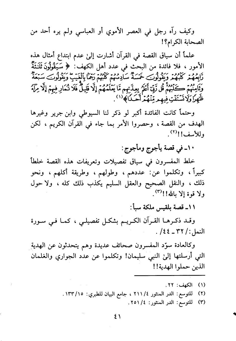 وحتما كانت الفائدة أكبر لو ذكر لنا السيوطي وابن جرير وغيرها الهدف من القصة، وحصروا الأمر بما جاء في القرآن الكريم، لكن وللأسف!! (¬2).