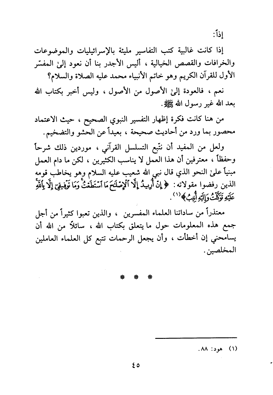 ولعل من المفيد أن نتّبع التسلسل القرآني، موردين ذلك شرحا وحفظا، معترفين أن هذا العمل لا يناسب الكثيرين، لكن ما دام العمل مبنيا على النحو الذي قال نبي الله شعيب عليه السلام وهو يخاطب قومه الذين رفضوا مقولاته: (إِنْ أُرِيدُ إِلَّا الْإِصْلاحَ مَا اسْتَطَعْتُ وَما تَوْفِيقِي إِلَّا بِاللَّهِ عَلَيْهِ تَوَكَّلْتُ وَإِلَيْهِ أُنِيبُ) (¬1).