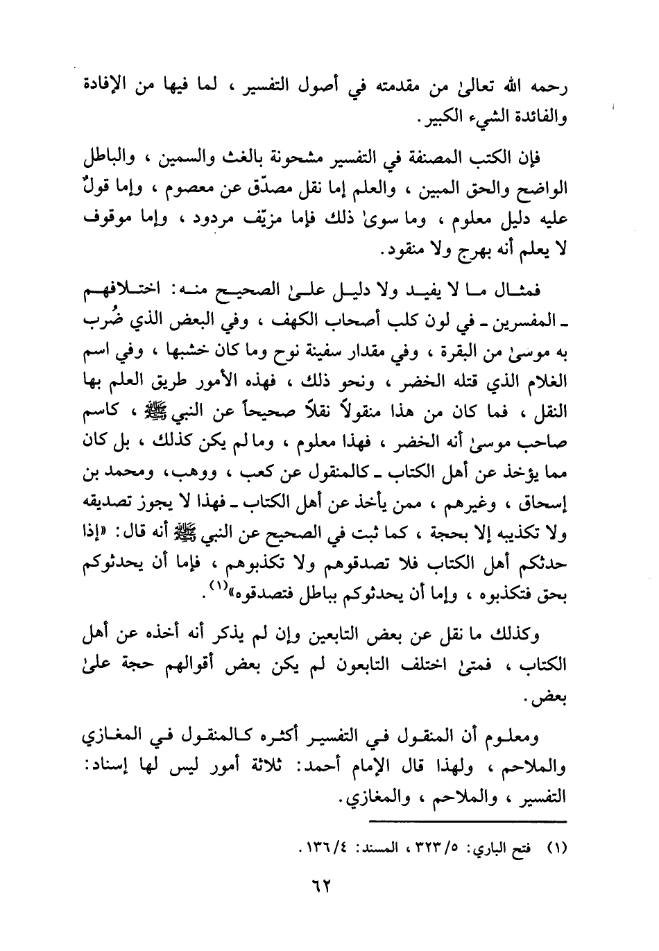 رحمه الله تعالى من مقدمته في أصول التفسير، لما فيها من الإفادة والفائدة الشيء الكبير.
