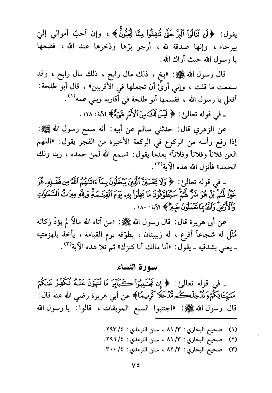 (¬1) صحيح البخاري: 3/ 81، سنن الترمذي: 4/ 293.