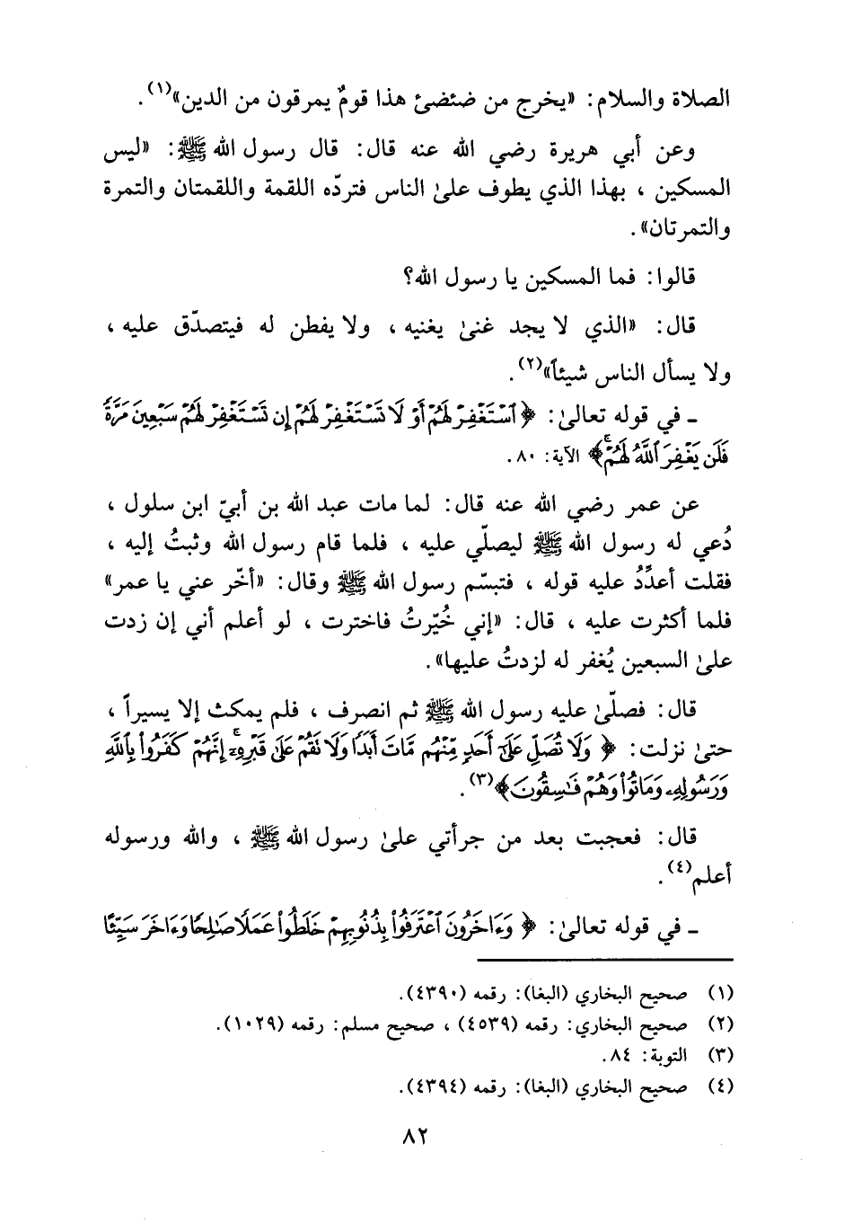 (¬2) صحيح البخاري: رقمه (4539)، صحيح مسلم: رقمه (1029).