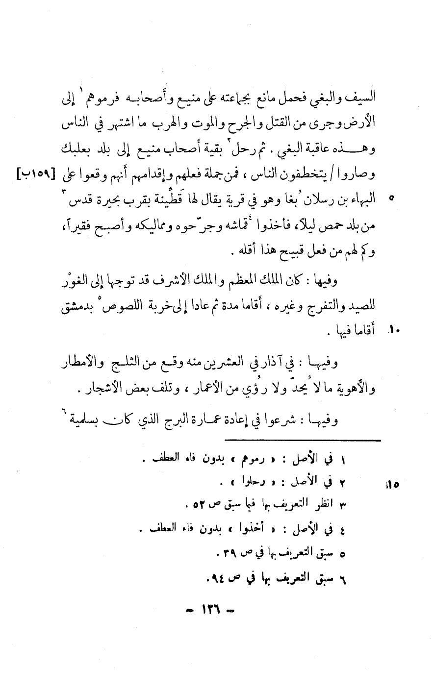 ثمَّ رَحل بَقِيَّة أَصْحَاب منيع إِلَى بلد بعلبك وصاروا يتخطفون النَّاس فَمن جملَة فعلهم وإقدامهم أَنهم وَقَعُوا على الْبَهَاء ابْن رسْلَان بغا وَهُوَ فِي قَرْيَة يُقَال لَهَا قطينة بِقرب بحيرة قدس من بلد حمص لَيْلًا فَأخذُوا قماشه وجرحوه ومماليكه وَأصْبح فَقِيرا وَكم لَهُم من فعل قَبِيح هَذَا أَقَله