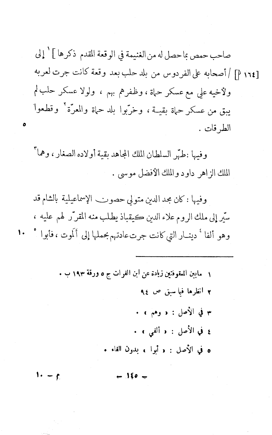 صَاحب حمص بِمَا حصل لَهُ من الْغَنِيمَة فِي الْوَقْعَة الْمُقدم ذكرهَا إِلَى أَصْحَابه على الفردوس من بلد حلب بعد وقْعَة كَانَت جرت لعربه ولأخيه عَليّ مَعَ عَسْكَر حماة وظفرهم بهم وَلَوْلَا عَسْكَر حلب لم يبْق من عَسْكَر حماة بَقِيَّة وخربوا بلد حماة والمعرة وَقَطعُوا الطرقات