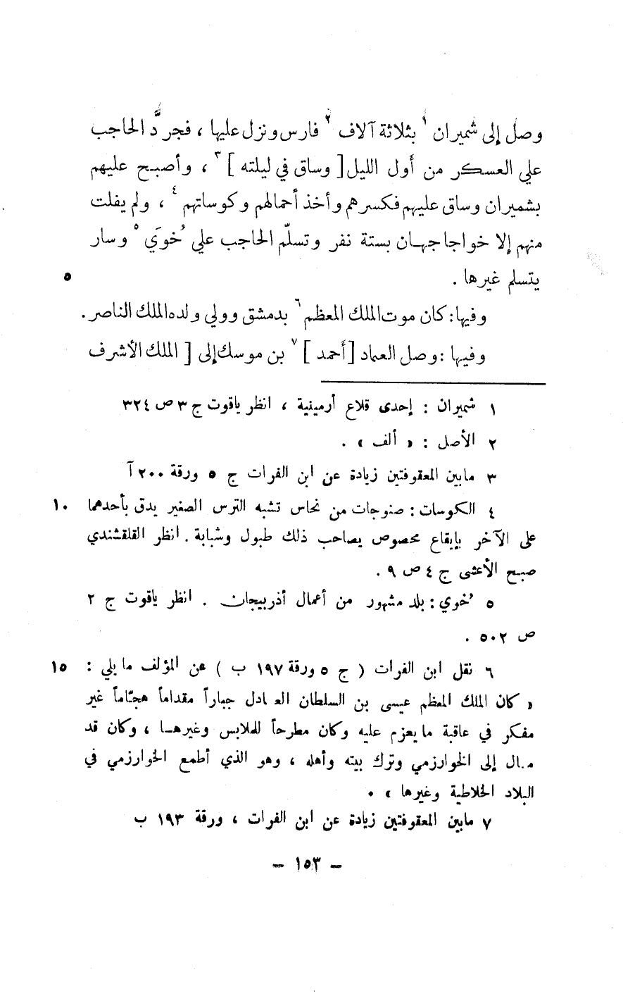 وصل إِلَى شميران بِثَلَاثَة آلَاف فَارس وَنزل عَلَيْهَا فَجرد الْحَاجِب عَليّ الْعَسْكَر من أول اللَّيْل وسَاق فِي ليلته وَأصْبح عَلَيْهِم بشميران وسَاق عَلَيْهِم فكسرهم وَأخذ أحمالهم وكوساتهم وَلم يفلت مِنْهُم إِلَّا خواجاجهان بِسِتَّة نفر وتسلم الْحَاجِب عَليّ خوي وَسَار يتسلم غَيرهَا
