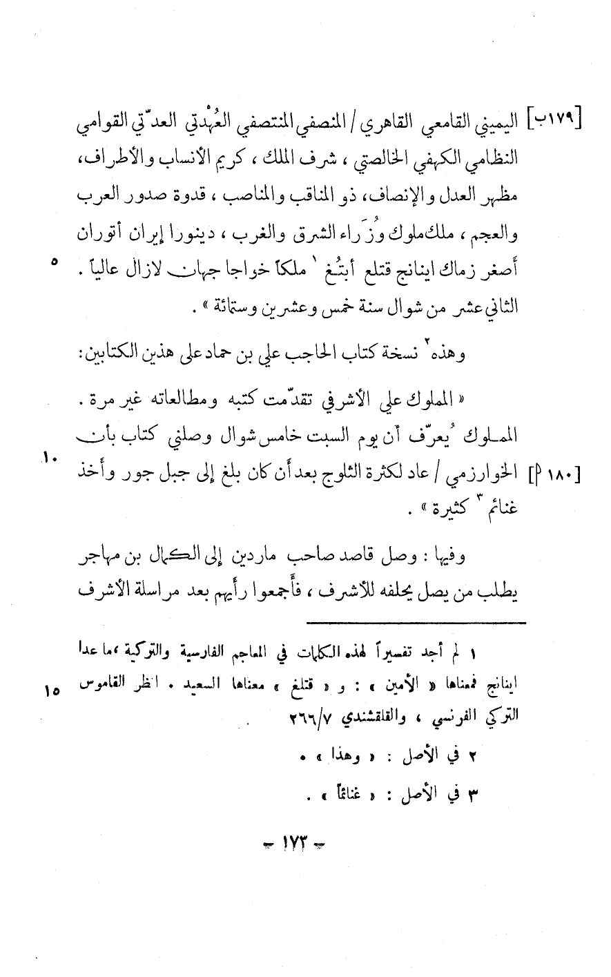 وَحَيْثُ خلا وَجه سُلْطَان الْعَالم من هَذِه الْجِهَة فَلَا شكّ وَلَا شُبْهَة فِي تصميم عزمه الْمُبَارك على فتح بِلَاد الأرمن وَالشَّام وَقد وصل الْأَجَل الْأَعَز بهاء الدّين جمال الْإِسْلَام وَالْمُسْلِمين رَضِي الْمُلُوك شرف الأماثل مَشْهُور خُرَاسَان أعز الله نَصره عَائِدًا من جِهَة الْمجْلس الشريف وَشرح مَا شَاهد من اختلال أَحْوَال بِلَاده