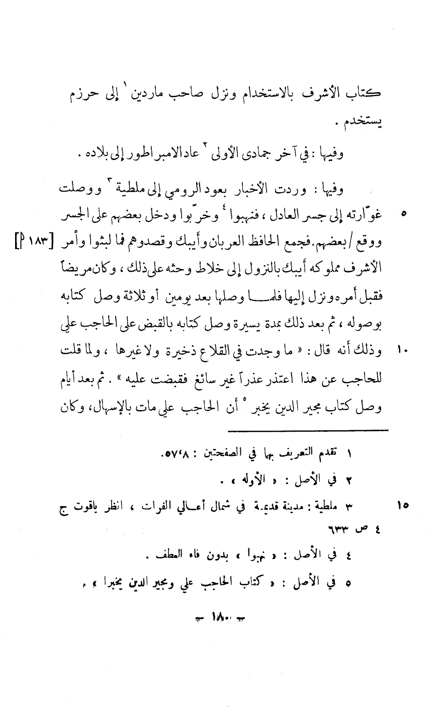 كتاب الْأَشْرَف بالاستخدام وَنزل صَاحب ماردين إِلَى حرزم يستخدم