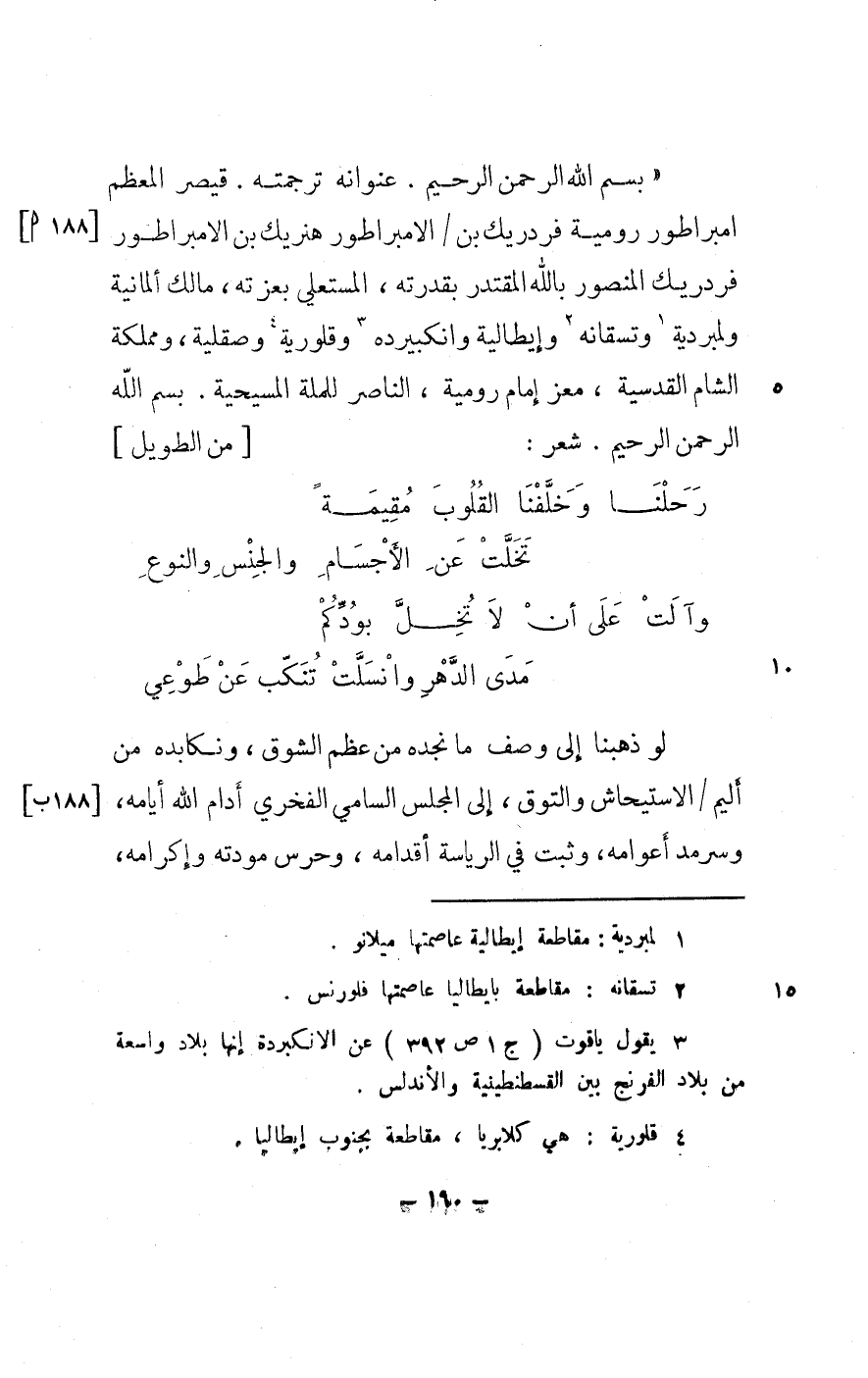 لَو ذَهَبْنَا إِلَى وصف مَا نجده من عظم الشوق ونكابده من أَلِيم الاستيحاش والتوق إِلَى الْمجْلس السَّامِي الفخري أدام الله أَيَّامه وسرمد أعوامه وَثَبت فِي الرياسة أقدامه وحرس مودته وإكرامه