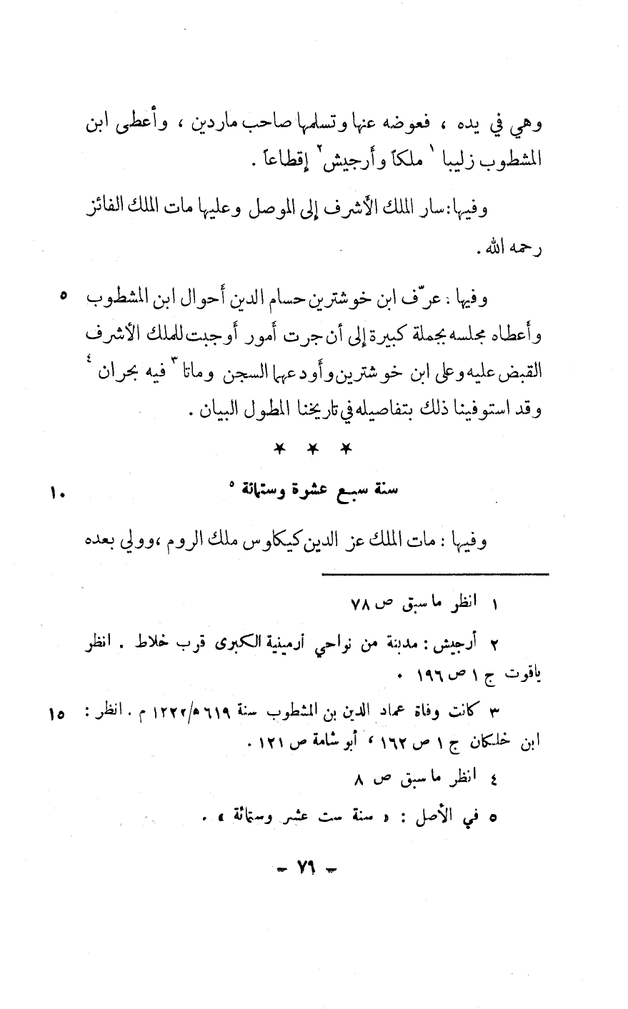 وفيهَا عرف ابْن خوشترين حسام الدّين أَحْوَال ابْن المشطوب وَأَعْطَاهُ مَجْلِسه بجملة كَبِيرَة إِلَى أَن جرت أُمُور أوجبت للْملك الْأَشْرَف الْقَبْض عَلَيْهِ وعَلى ابْن خوشترين وأودعهما السجْن وَمَاتَا فِيهِ بحران وَقد اسْتَوْفَيْنَا ذَلِك بتفاصيله فِي تاريخنا المطول الْبَيَان