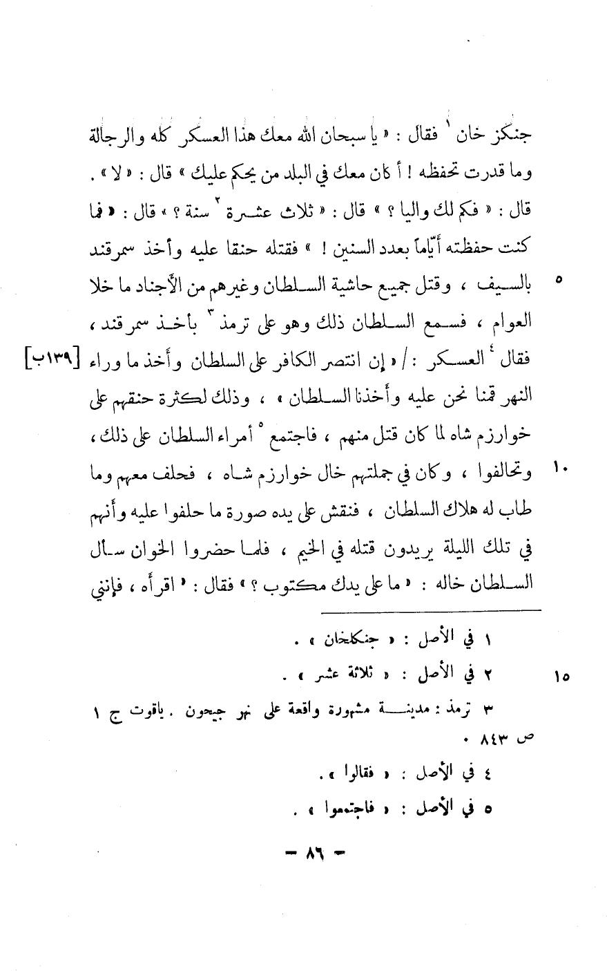 جنكز خَان فَقَالَ يَا سُبْحَانَ الله مَعَك هَذَا الْعَسْكَر كُله والرجالة وَمَا قدرت تحفظه أَكَانَ مَعَك فِي الْبَلَد من يحكم عَلَيْك قَالَ لَا