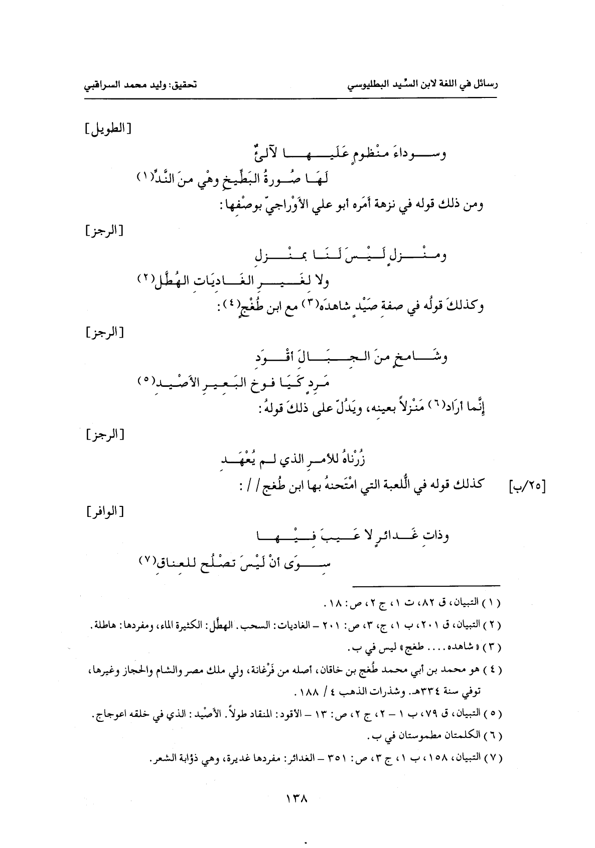 كذلك قوله في اللعبة التي امتحنه بها ابن طغج: