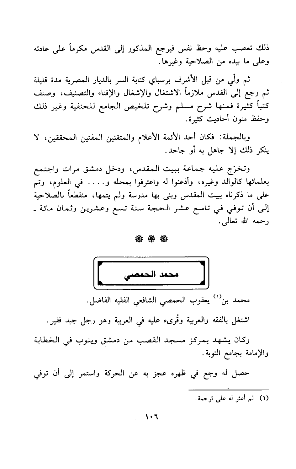 محمد بن (¬1) يعقوب الحمصي الشافعي الفقيه الفاضل.