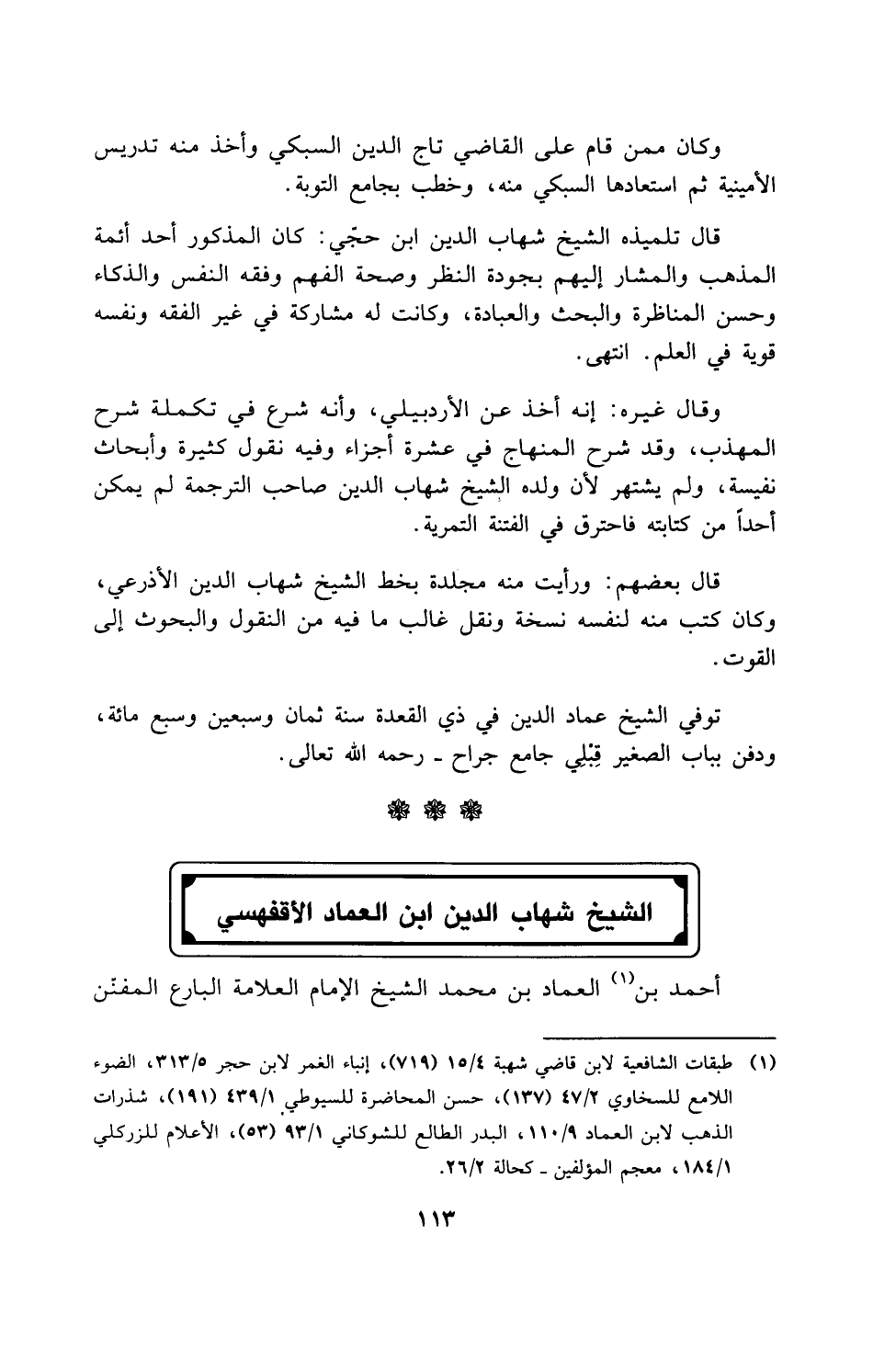 الشيخ شهاب الدين ابن العماد الأقفهسي