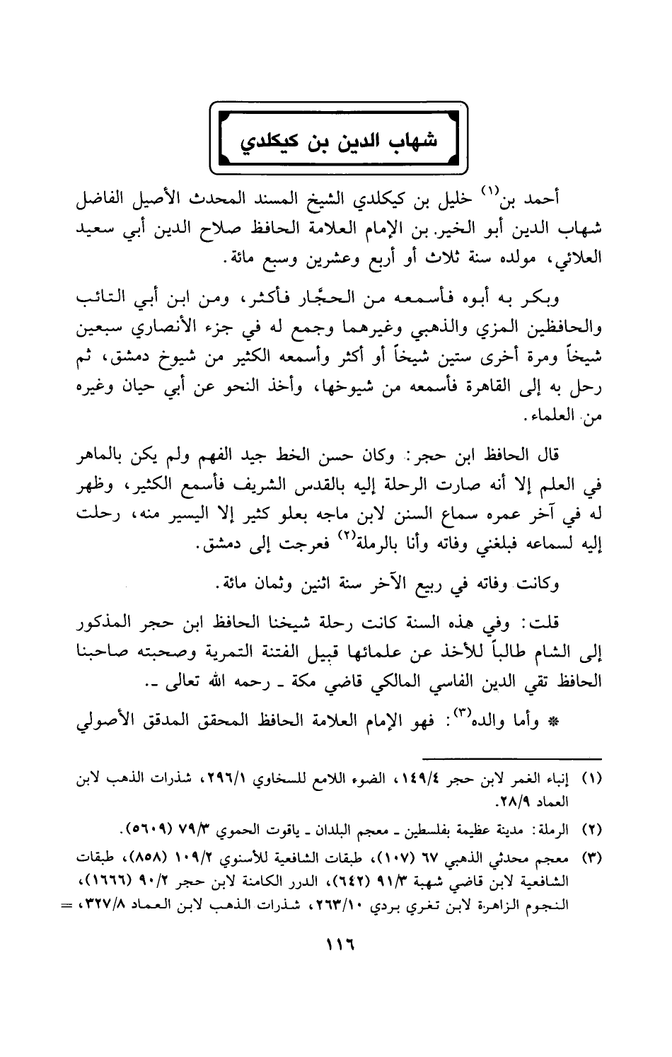 (¬3) معجم محدثي الذهبي 67 (107)، طبقات الشافعية للأسنوي 2/ 109 (858)، طبقات الشافعية لابن قاضي شهبة 3/ 91 (642)، الدرر الكامنة لابن حجر 2/ 90 (1666)، النجوم الزاهزة لابن تغري بردي 10/ 263، شذرات الذهب لابن العماد 8/ 327، =