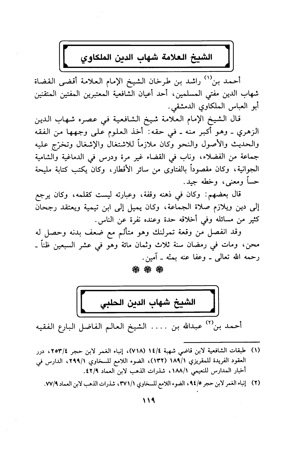 (¬2) إنباء الغمر لابن حجر 5/ 94، الضوء اللامع للسخاوي 1/ 371، شذرات الذهب لابن العماد 9/ 77.